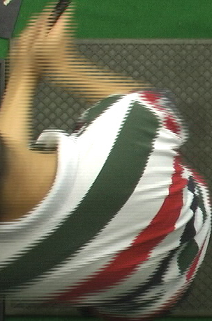 自分の脳内イメージでこの動きが作れるのは まったくもって感心する この前 もしくは この画像で 両肘の動き…… 左肘の動き もしくは 右手の動きで クラブを体に対し すこ〜し 左にずらせていれば …。 または 脳内イメージで クラブを持つ腕のセンター(腕の中心)が 右胸から 左胸 にずらす動き、 これをシフトよりも先に行う感じがあれば 大幅に改善されるだろう。